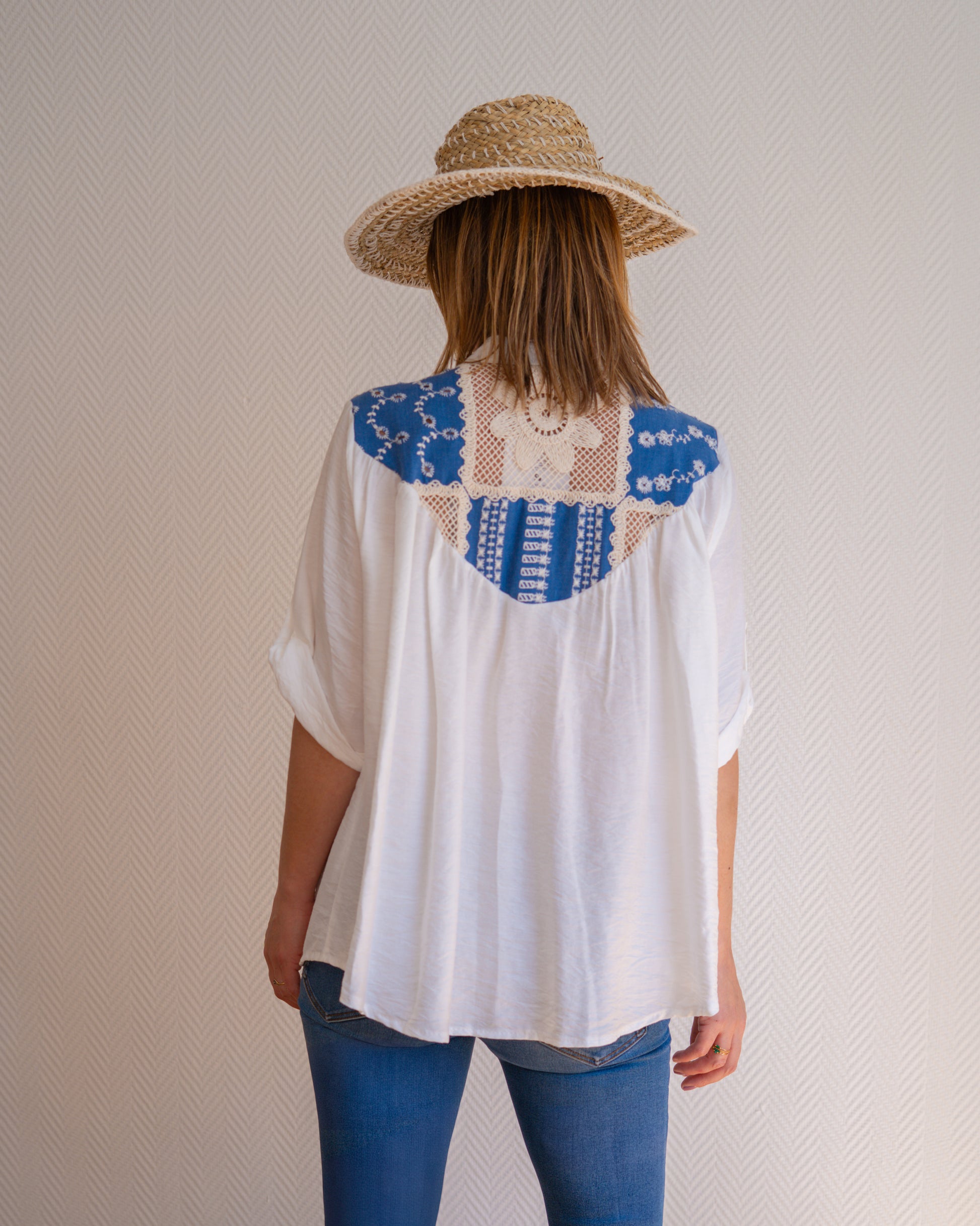 Délicat et raffiné, ce chemisier 100% viscose séduit par sa fluidité et ses broderies élégantes. Parfait pour une tenue féminine et soignée, il se porte aussi bien au bureau qu'en sortie.