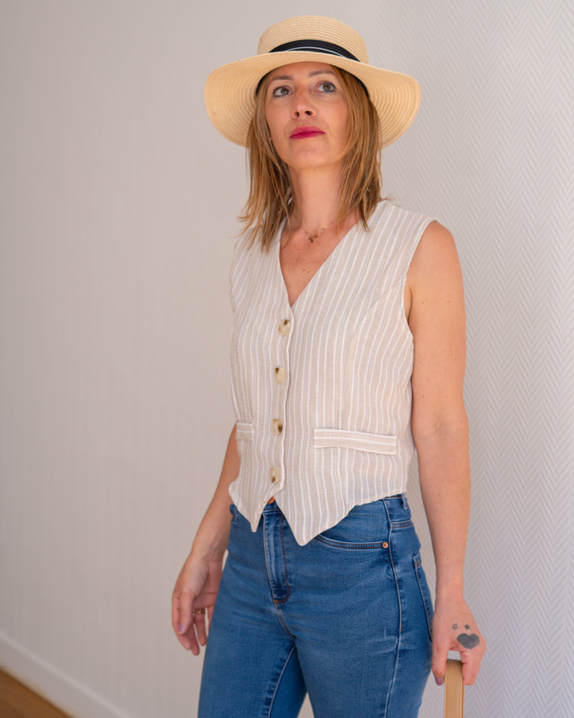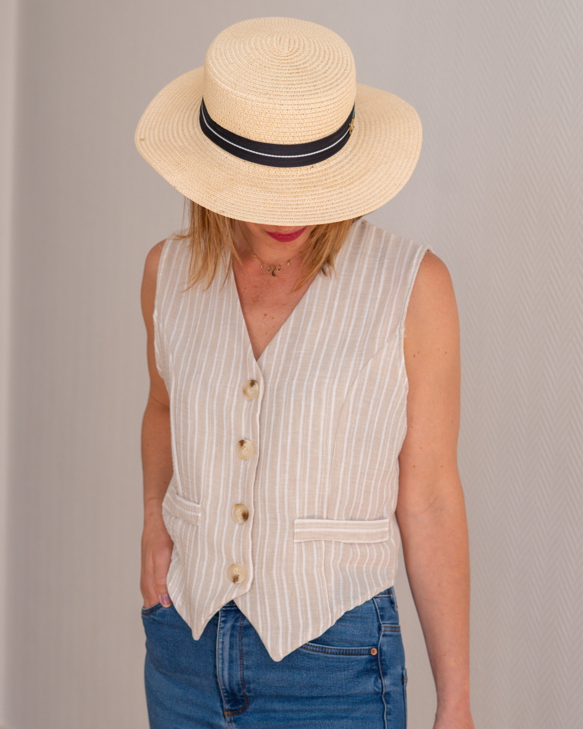 Avec son motif rayé et son effet lin, ce gilet rigato à boutons allie légèreté et élégance. Idéal pour les beaux jours, il apporte une touche naturelle et tendance à vos tenues, tout en restant facile à associer.