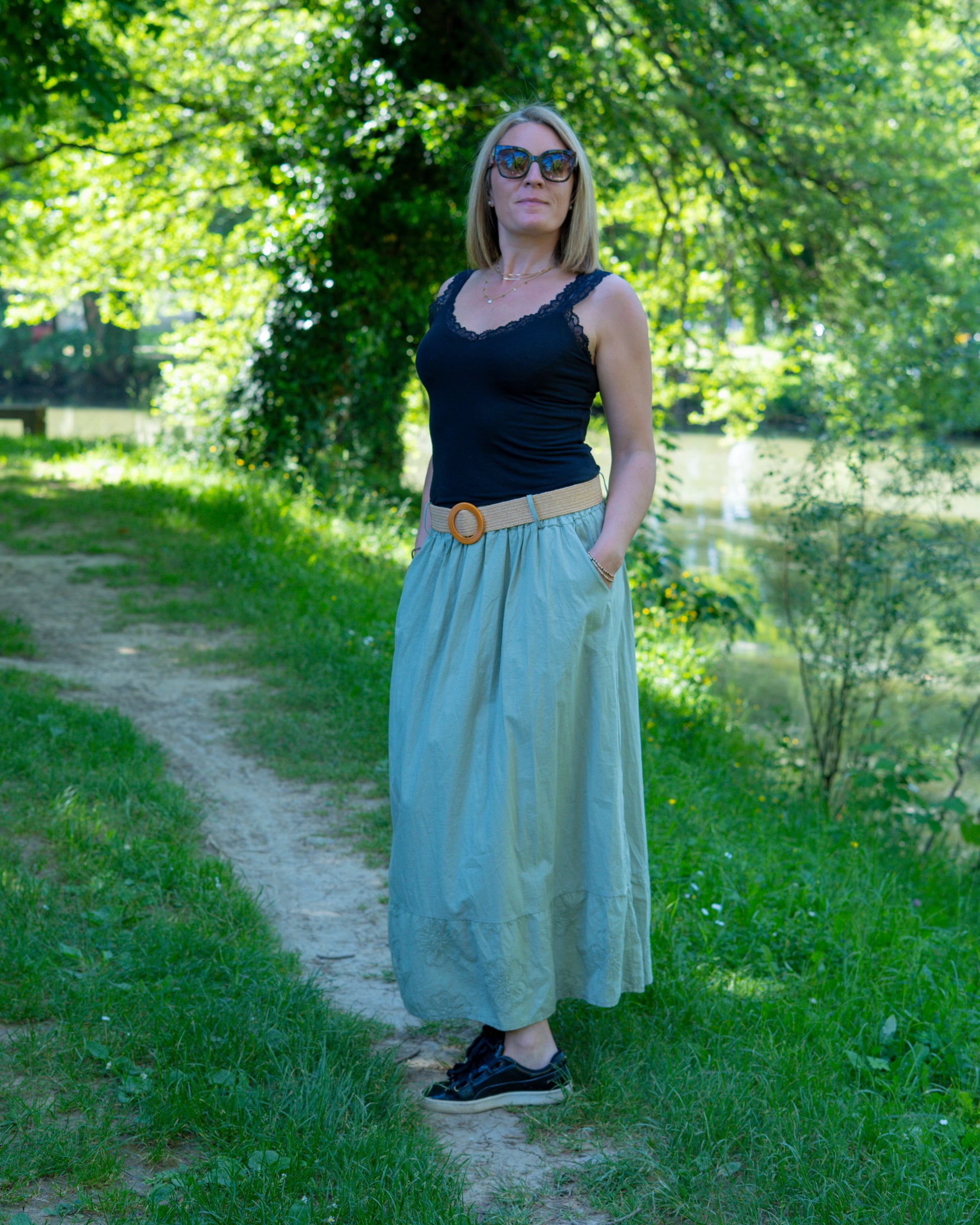 Jupe longue en coton verte